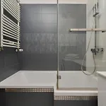 Es gibt Zimmer mit Parkettböden. Es gibt 1 Bad mit einer Badewanne und einer Dusche. Ein Haartrockner und Handtücher sind ebenfalls vorhanden.